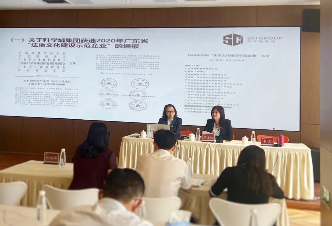 彭月梅作了学习动员讲话,要求全体员工将学习作为“百年党史庆百年”活动的重要一环,不忘初心使命,以科城铁军的奋勇姿态、学习争先。会上,彭月梅通报了集团公司成功获评2020年广东省“法治文化建设示范企业”的喜讯,这是对集团公司系统内法治宣传和风险防控工作的肯定,也是对集团公司及下属企业依法治企、学法用法工作的认可。