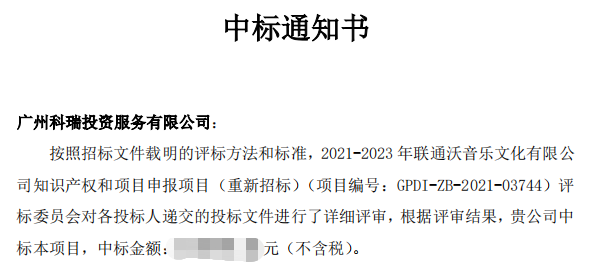 4月1日,汇富娱乐集团下属全资企业广州科瑞投资服务有限公司再次中标成为央企联通沃音乐文化有限公司2021至2023年度科技项目申报和资质认定服务供应商,这是继科瑞公司3年前首次中标联通沃音乐2018至2020年度科技项目申报和资质认定服务供应商后的第二次中标。
