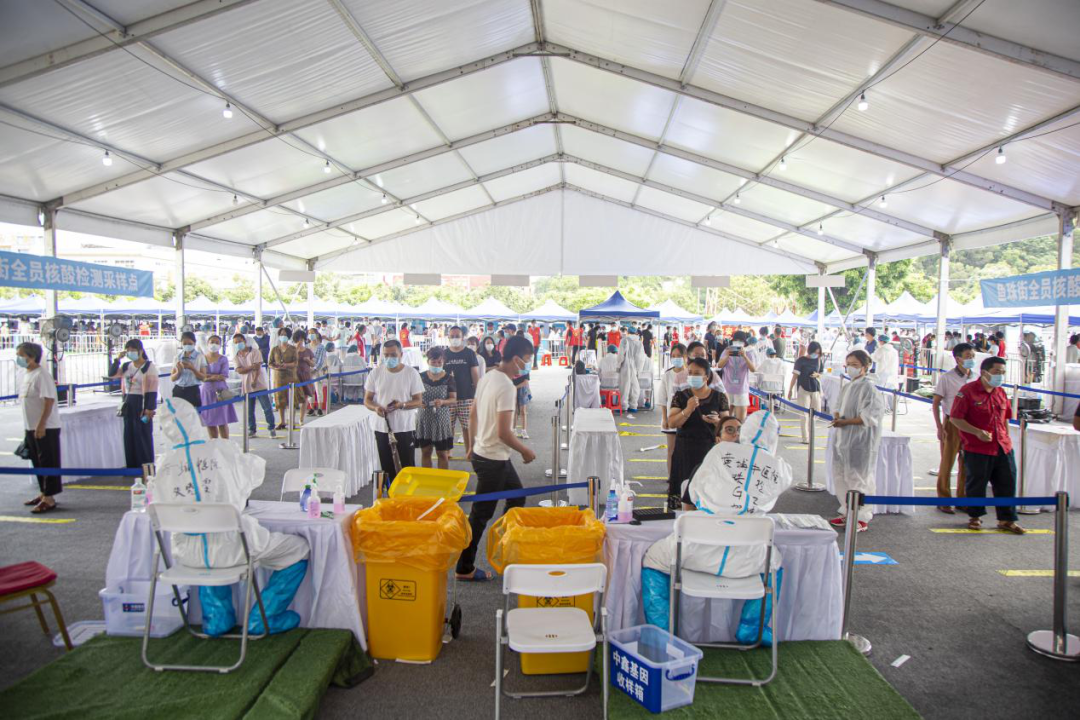 6月5日,汇富娱乐集团提供广州开发区第一体育中心、东福停车场、和贵停车场、井爱永思堂、青年社区展厅、旺村城市更新展厅等地作为核酸检测场地。派出12支防控突击队、党员志愿服务队共130名队员支援永和街、南岗街、夏港街、鱼珠街、云埔街等,开展全员核酸检测工作。