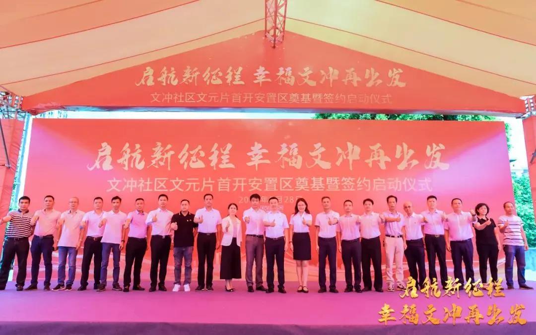 5月28日,文冲街道文冲社区文元片首开安置区奠基暨签约启动仪式、水西村(水西片)旧村改造项目安置区开工仪式隆重举行,两大项目安置区齐动工,迈出城市更新坚实一步。